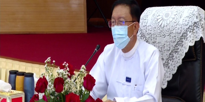 Chairman of Central Committee for Data Accuracy and Quality of Statistics Deputy Prime Minister Union Minister for Planning and Finance U Win Shein gave a remark at the central committee meeting (1/2023) held at the meeting of Ministry in Nay Pyi Taw in the afternoon on 26th April.