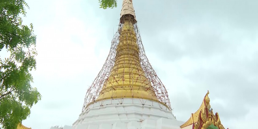 Next, the Chief Minister and officials gilded the Pennant-shaped vane of the pagoda.