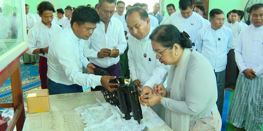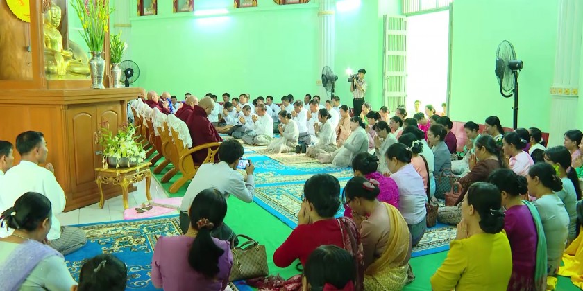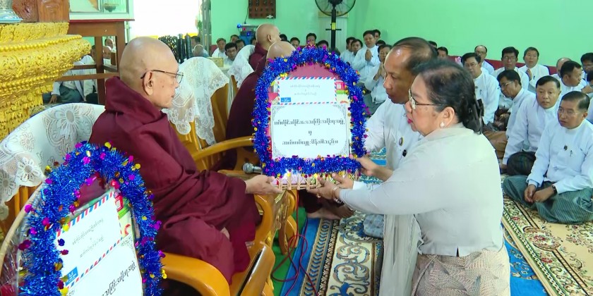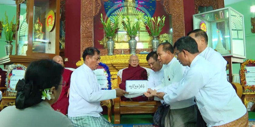 First, the congregation led by the Chief Minister observed eight precepts administered by the Presiding Sayadaw of Oakkan Tawya monastery in Monywa Township, took the Paritta Suttas recited by the members of Sangha and advices given by the Sayadawgyis, offered the offertories to the members of Sangha and the Chief Minister and wife, Chief Justice of the State High Court, Region Ministers and wives and well-wishers contributed cash donations, took the sermon delivered by Presiding Sayasaw of Yankin monastery of Monywa Township and shard the merits gained.