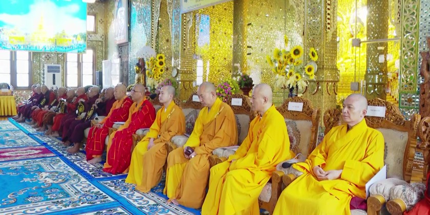 Afterwards, Deputy Minister U Aye Tun conveyed words of joy and appreciation for the collective donations. Subsequently, the Yangon Region Chief Minister, the Deputy Minister for Religious Affairs and Culture, Region Ministers, Trustee Board members, and donors offered the donation items to the Sayadaws. Venerable Van Shichang Zang then donated 10,000 Yuan for the construction of a new treasury building, which was received by Deputy Minister U Aye Tun and the Trustee Board members.