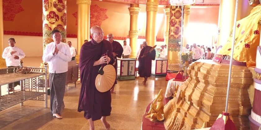 Afterward, the Sayadaw and the Sangha recited Paritta Suttas. The Chief Minister, his wife, the Chief Justice of the State High Court, State Government Ministers, and responsible officials continued by offering alms and requisites to the Sayadaw and members of Sangha.