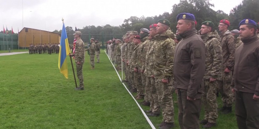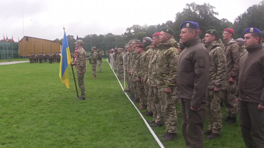 An opening ceremony for international military drills was held in western Ukraine on Monday.