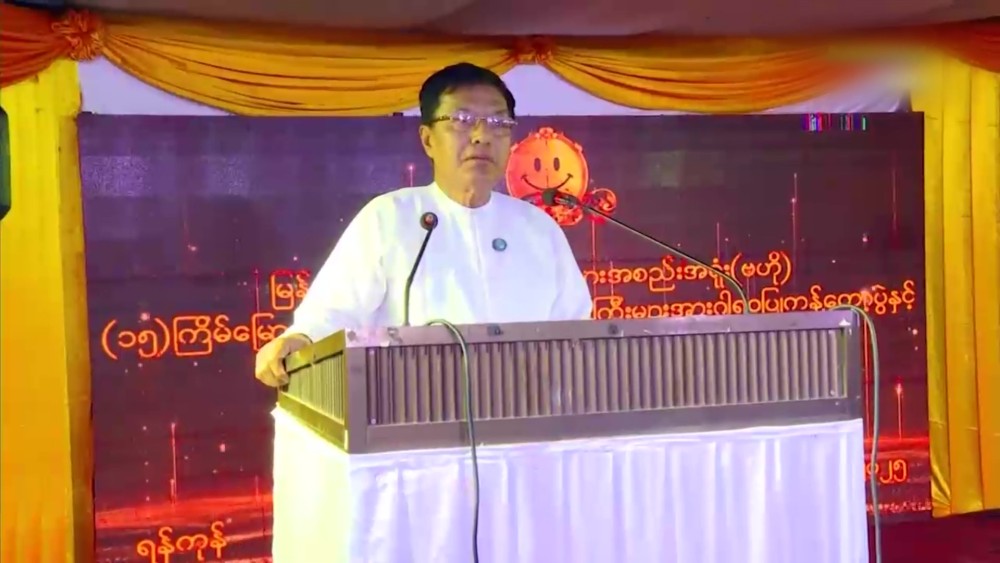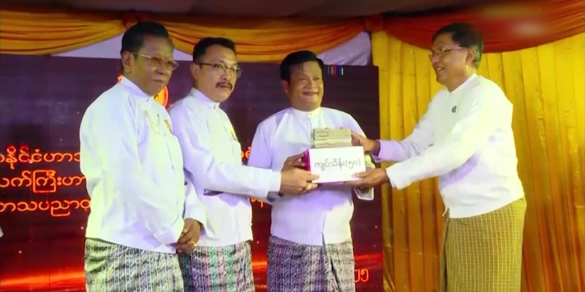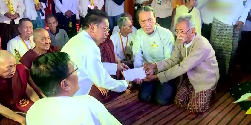 Following this, Chairman of Myanmar Comedians Association (Central) U Dain Daung, gave words of thanks. Donations were then presented to the Myanmar Comedians Association (Central). Deputy Minister U Ye Tint presented 5 million kyats from the Ministry of Information, and Yangon Region Social Affairs Minister U Htay Aung presented 10 million kyats from the Yangon Region Government.