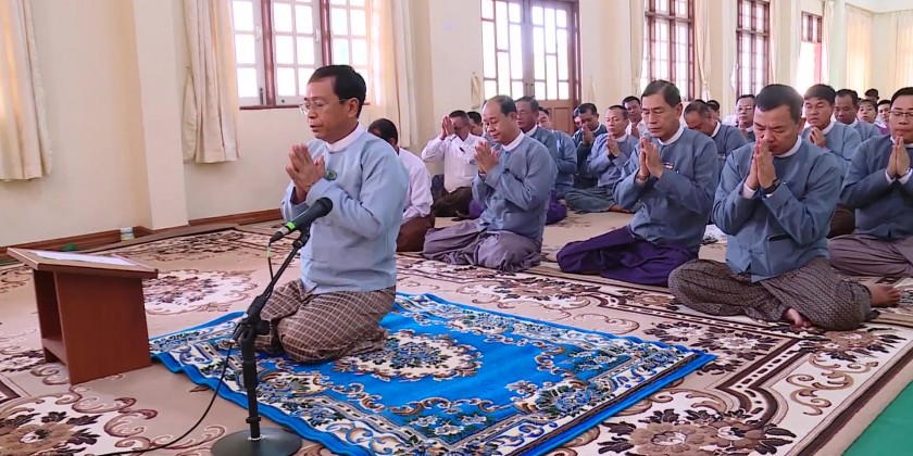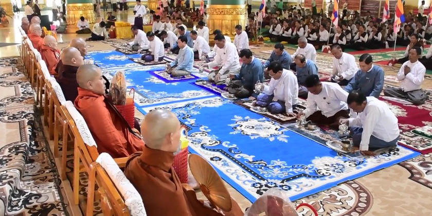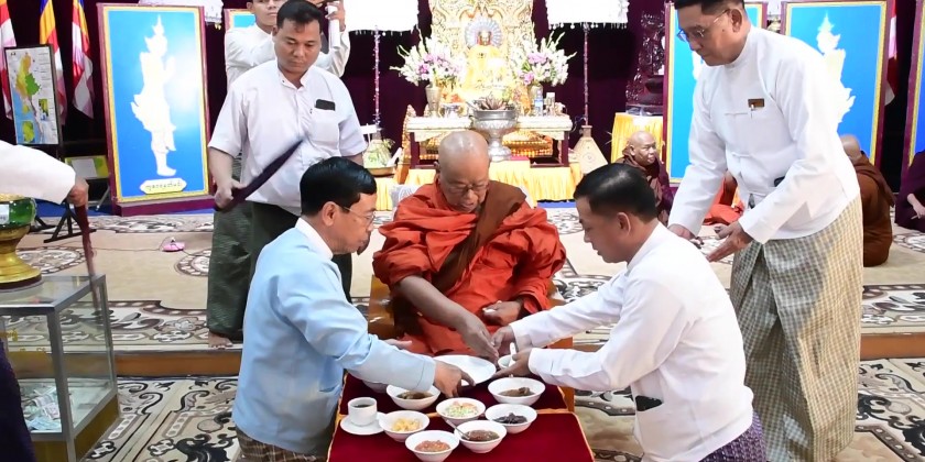 Consequently, the Nay Pyi Taw Council Chairman and officials also attended the ceremony of 16th Thadingyut Full Moon Day (Abhidhamma Day) held in the cave of Uppadasanti Pagoda, donated the offertories to the members of Sangha and offered day meal to the Sangha.