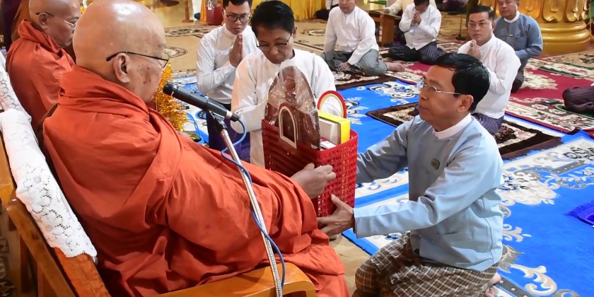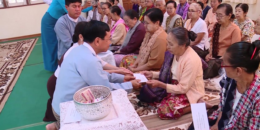At the ceremony, NDC Chairman Mayor U Than Tun Oo and wife paid obeisance to 108 elders of 70 years old and above in accordance with the Myanmar traditional customs on the full moon day of Thadingyut (Abhidhamma Day), provided cash assistance and one elder extended words of loving-kindness and wishing on behalf of all obeisance recipient elders.