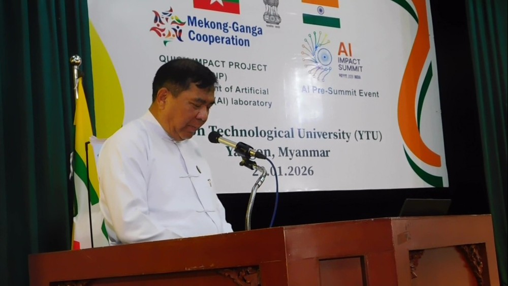The Acting Rector of Yangon Technological University explained the details of the "Establishment of Artificial Intelligence (AI) Laboratory at Yangon Technological University" project, and a commemorative video of the project was viewed. Following this, the Rector of Keng Tung Polytechnic University presented information regarding preparatory activities for the upcoming India AI Impact Summit 2026 to be held in India.
