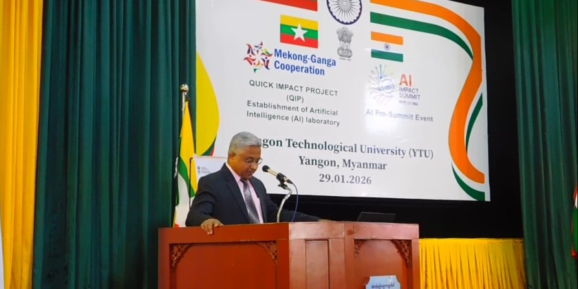Union Minister for Science and Technology, Dr. Myo Thein Kyaw attended the ceremony and delivered the opening address. This was followed by an opening speech by Mr. Abhay Thakur, Ambassador of India to Myanmar. Subsequently, a Pre-AI Impact Summit Event documentary was shown.