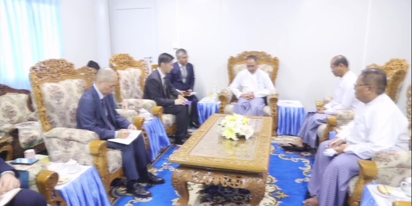 Union Minister for Labour U Aung Kyaw Hoe received Mr. Iori Kato, Regional Director for Asia and the Pacific of the International Organization for Migration (IOM), at the reception hall of the Ministry’s temporary office building in Nay Pyi Taw on August 12.