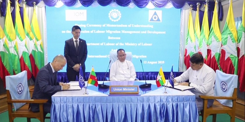 Following this, Mr. Iori Kato explained the current state of IOM’s cooperation, and Director General of the Department of Labour along with the Chief of Mission of IOM Myanmar, signed the MoU on enhanced cooperation in migration management.