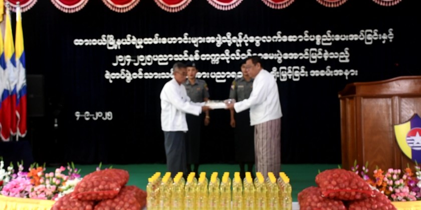 Following this, Chief Minister U Myat Ko handed over a fund contribution of 7 million kyats to the Dawei Township Retired Police Officers Association. The donation was received by U Khin Maung Myint, Minister for Natural Resources of Tanintharyi Region and Chairman of the Regional Supervisory Committee for Retired Police Associations, who in turn presented a certificate of honor issued by the Myanmar Retired Police Officers Federation to the Chief Minister.