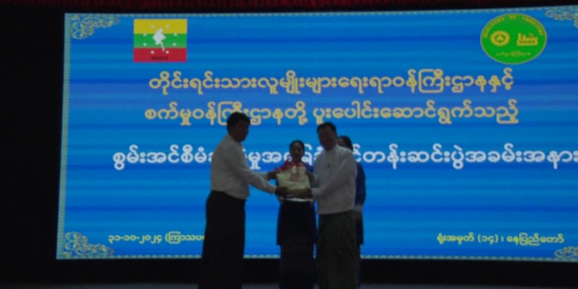 Union Minister for Ethnic Affairs Jeng Phang Naw Taung attended the ceremony of completing basic training on Energy management jointly organized by the Ministry of Ethnic Affairs and Ministry of Industry held at the Ministry in Nay Pyi Taw on 31st.