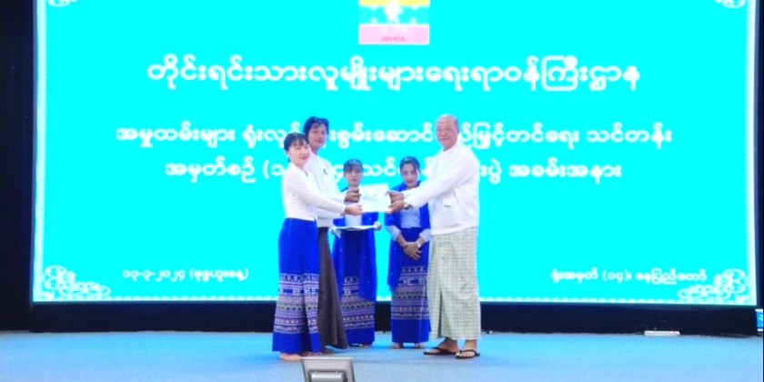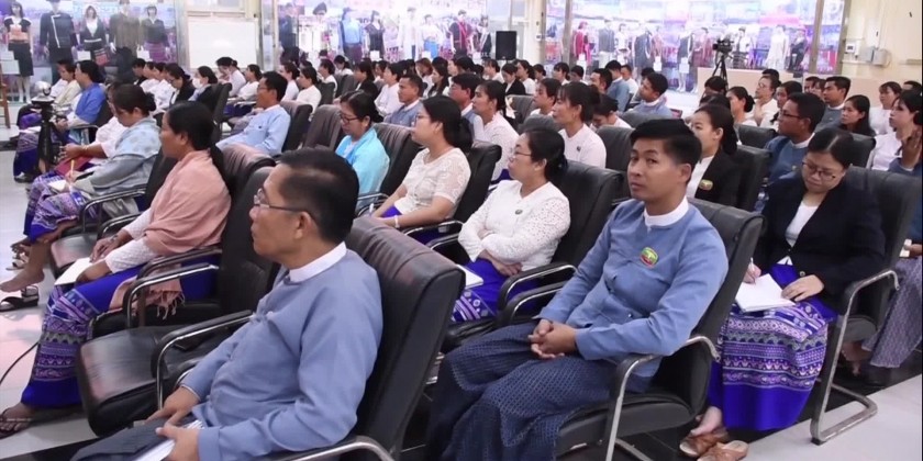Those are needed to be implementing the interest of the people with righteousness and loyalty. Next, the Deputy Minister U Zaw Aye Maung gave a remark. Then, the Union Minister handed the certificate of completion of the training and a man and woman trainee accepted on behalf of the men and women trainees. After expressing words of thanks by a trainee on behalf of the trainees, the ceremony was concluded.