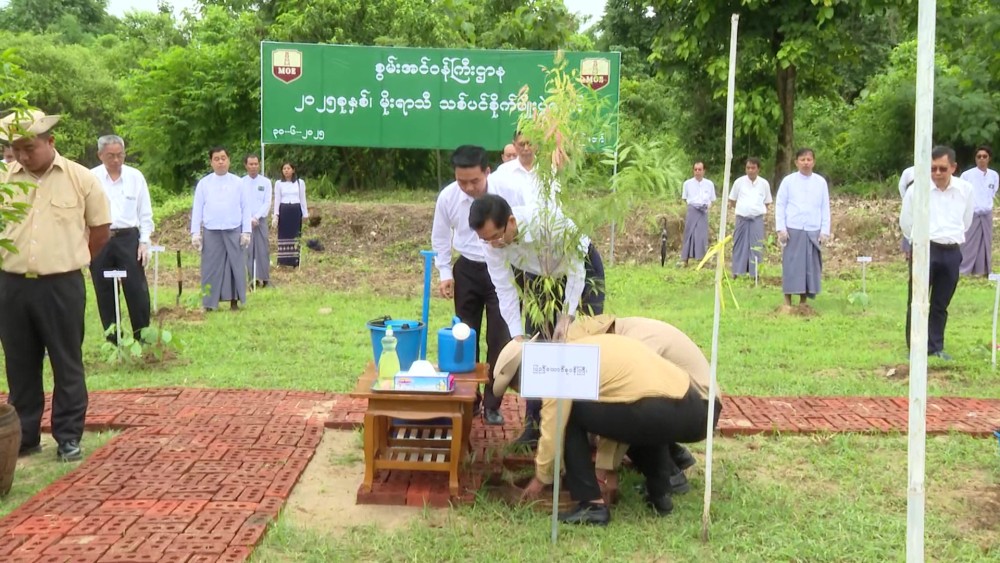 The event was attended by Union Minister U Ko Ko Lwin, along with the Deputy Minister, Director Generals, Heads of Departments and Enterprises, and officials and staff under the Ministry. At the ceremony, Union Minister U Ko Ko Lwin led the planting of a Gantgaw tree at the designated location.