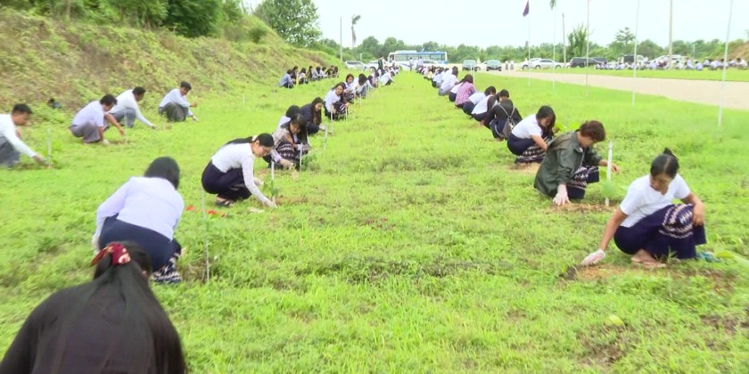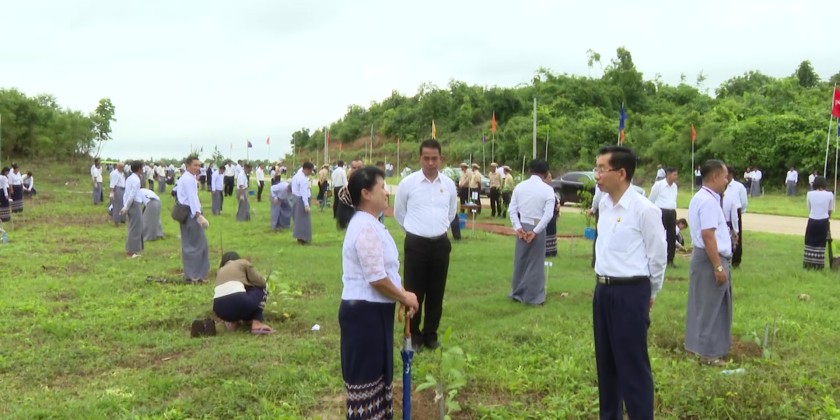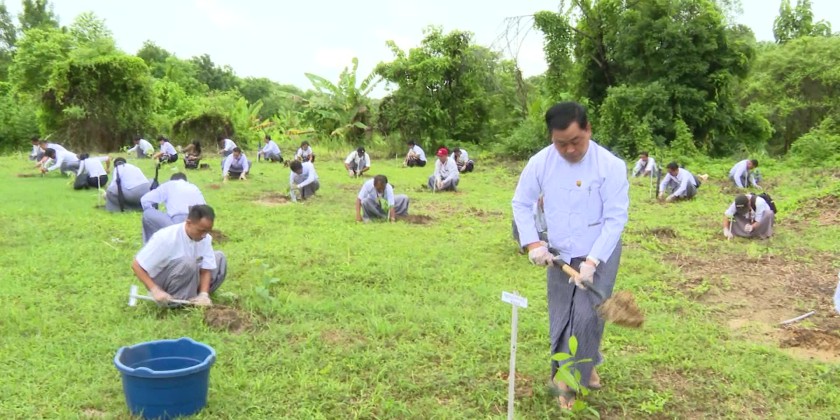 At the same time, under the supervision of the Ministry, regional inspection offices, oil fields, and various factories and workshops across Regions and States also participated in planting. In total, 4,560 trees including Star-flower, Teak, Pyinkado, Mahogany, Mango, Padauk, Eugenia, Kokko, Tamarind, and other shade and windbreak trees were planted in a systematic manner.
