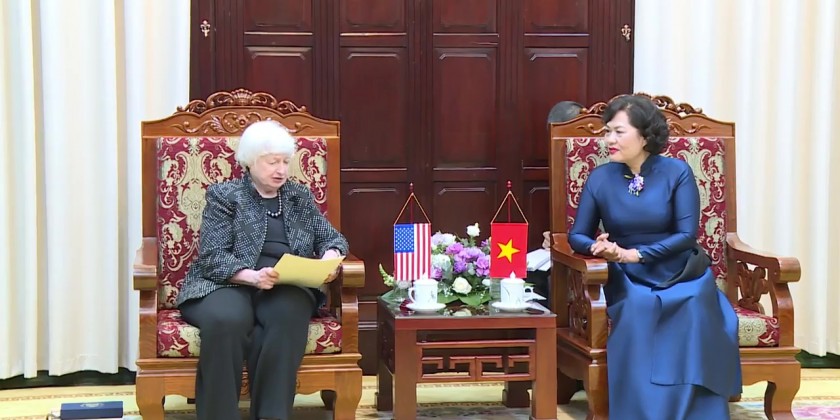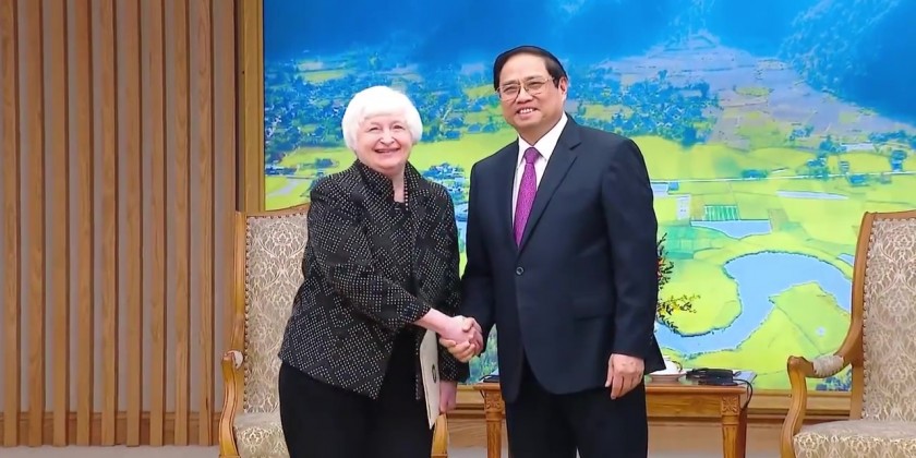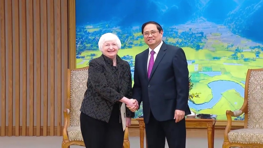 The US official highly appreciated the political declaration on the establishment of the Just Energy Transition Partnership between Vietnam and its development partners, hoping that it would be an effective resource to support Vietnam in its energy transition, achieving the goal of net zero emissions by 2050. Before the meeting, the US Secretary of the Treasury also met with the Vietnamese Minister of Finance.