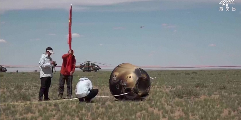 The return capsule landed precisely in the designated area in Siziwang Banner, north China’s Inner Mongolia Autonomous Region at 2:07 p.m. (Beijing Time), operating normally, and the mission is a complete success, according to the China National Space Administration.