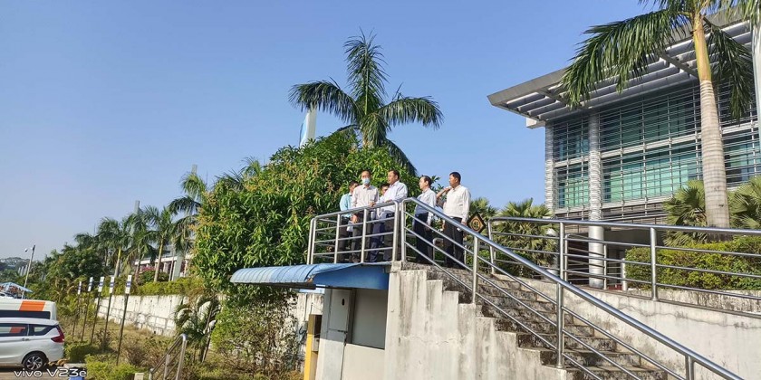 Chairman of the Electric Vehicles Operating and Basic Infrastructures Implementation Work Committee Deputy Minister for Construction U Win Pe together with officials inspected location of Yangon International Airport charging station to be constructed by Yangon Aerodrome Co., Ltd for running and operating electric vehicles on Monday.