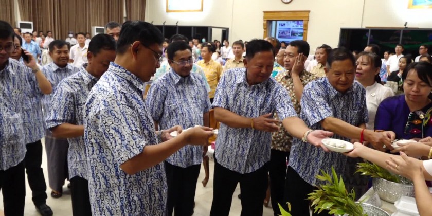 The Ministry of Construction celebrated Charity Feast and Water Festival as a gesture to welcome the Traditional Thingyan Festival on Friday. Union Minister U Myo Thant, the Deputy Minister, the Permanent Secretary and officials enjoyed the festival together with the staff.
