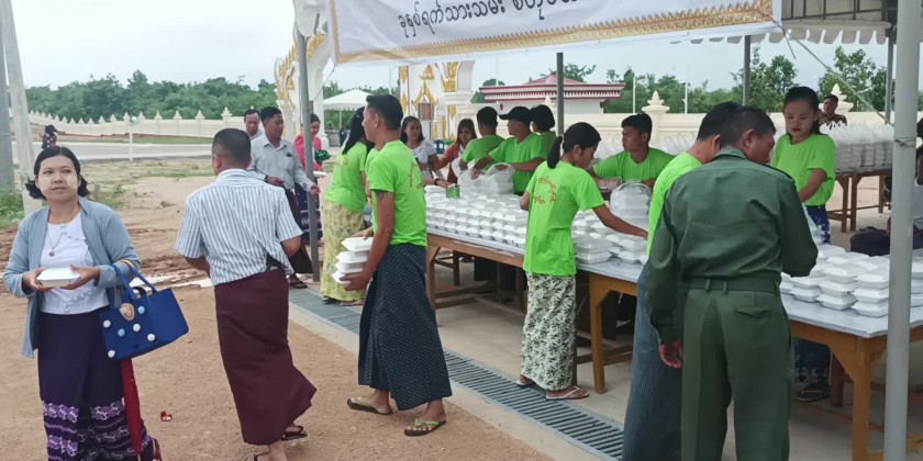 In addition to the donation there, the well-wishers donated 5,000 boxes of biryani at the 100-bed hospital, at the Withakha Ponnami GonWai Nunnery, at the Yadana Dipa Nunnery, at the SaMaTaung Philanthropic Center and at 2 monastic schools in Lewei Township,at the 50-bed hospital in Dekkhinathiri Township, at the Sangha Hospital, at the 200-bed hospital, at the Home for the Aged, at the MyaSuMon Philanthropic Center, at the SetYone Philanthropic Center and at a monastic school in Pyinmana Township and at 2 monasteries in Pobbathiri Township.