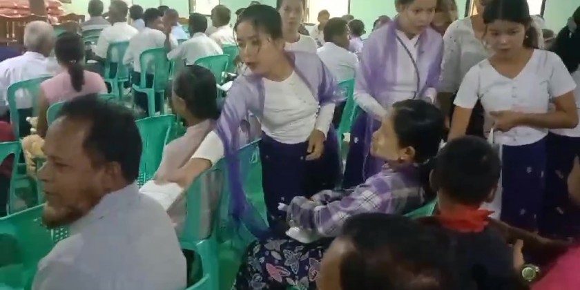SKY NET For People, Myanmar Licensed Contractors Association, Myanmar Licensed Contractors Association (Rakhine State), Myanmar-China Buddhism and Cultural Exchange Association, Myanmar-India-China International Cooperation & Economic Development Association, Myanmar Licensed Contractors Public Co., Ltd and Multi Religious Friends jointly organize the donation of charity feast daily.