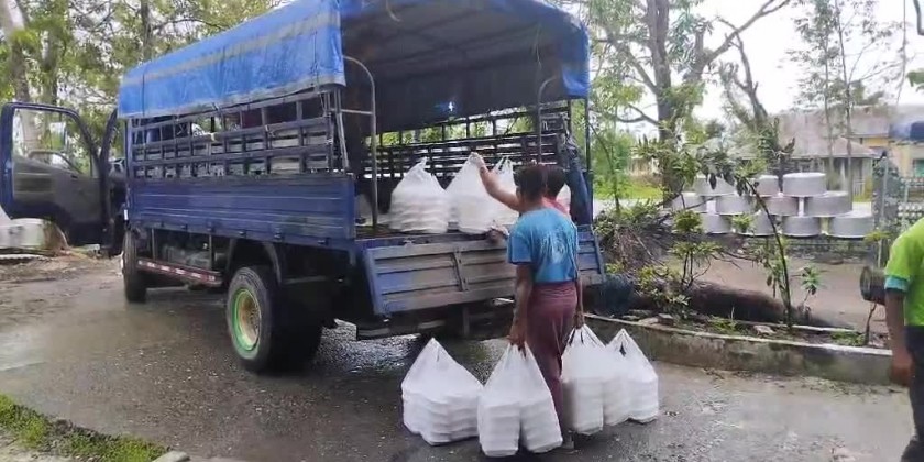 The charity feast went to the Fire brigade, Sittwe military station, Buddhist monasteries and other religious places, Nursing and Midwife Training School, volunteer groups, orphanages including Border Area National Races orphanage, departmental personnel who are carrying out the rehabilitation works, technical training school and computer university renovation volunteer groups, philanthropic centers, the ceremony of handing over paddy seeds, the residents from Nga Pon Gyi and Gaung Dot Hta villages in the morning and Ah Nauk San Pya ward, Ywa Thit Kay village, Min Gan ward, Ywa Gyi Myauk village, Gantgaw Gyun ward in the evening.