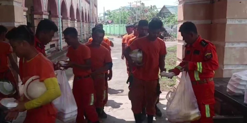 The charity feast donation of rice and egg curry meal and vegetable biryani are being donated on 9th of June in Sittwe Township of Rakhine State where the cyclonic storm Mocha was severely affected.