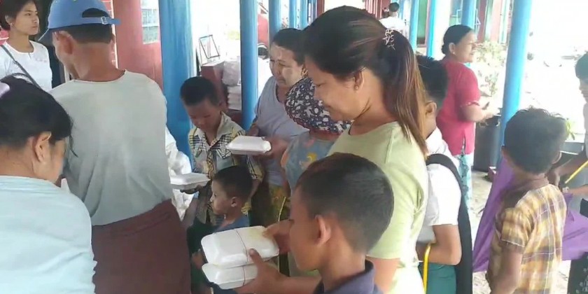 SKY NET For People, Myanmar Licensed Contractors Association, Myanmar Licensed Contractors Association (Rakhine State), Myanmar-China Buddhism and Cultural Exchange Association, Myanmar-India-China International Cooperation & Economic Development Association, Myanmar Licensed Contractors Public Co., Ltd and Inter-Faith Friendship Organization jointly organize the donation of charity feast which cater for over 10,000 people daily for 30 days.