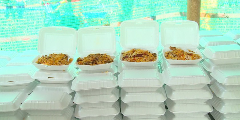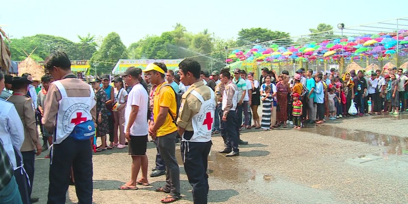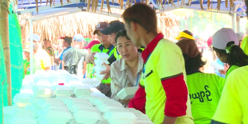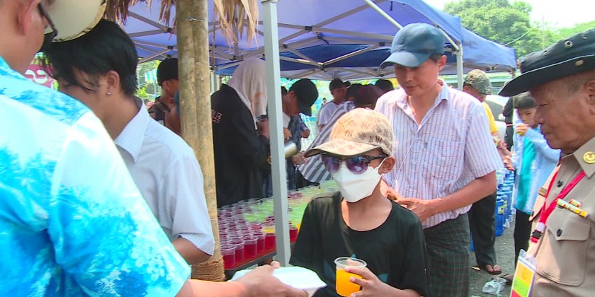 To celebrate the 1384 Myanmar Traditional Thingyan Festival, a charity food donation ceremony organized by the Myanmar Interfaith Dialogue Group continued on Saturday at the People’s Square in Dagon Township of Yangon Region. The Group hosts vegetarian biryani, drinks and water to all revellers.