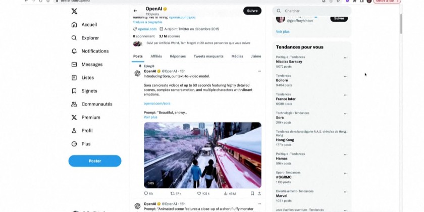 The US Company Open AI on Thursday unveiled new AI application "Sora" that can produce short realistic videos. According to the Open AI, Sora can create videos of up to 60 seconds featuring highly detailed scenes, complex camera motion, and multiple characters with vibrant emotions.