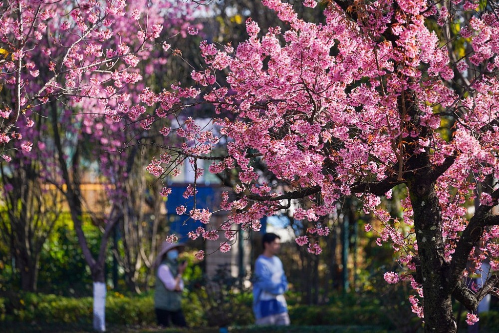 Cherry blossoms are in full bloom in Kunming, southwest China's Yunnan Province, bringing a taste of spring to winter time. In Kunming, there are two species of cherry trees, which blossom in different month.