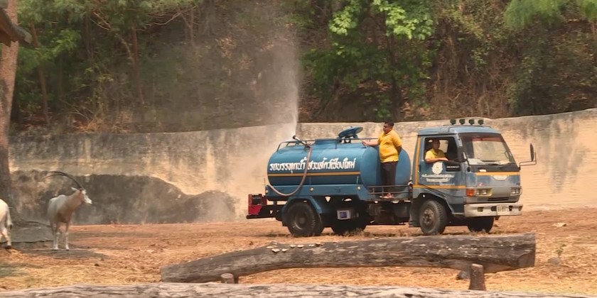 The zoo staff has also provided frozen treats made from fruits and other refreshments.The zoo has intensified efforts to closely monitor and cool down the animals in all zones of the Chiang Mai Zoo by increasing the frequency of spraying to reduce the high temperatures and dust levels.
