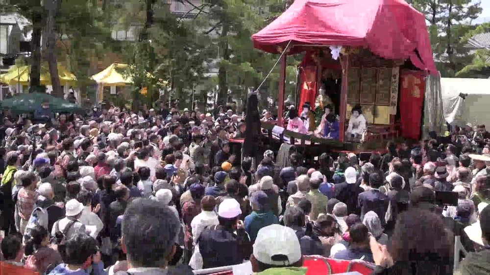 It is performed on stages built on elaborately decorated floats called hikiyama. Tuesday was the main day of the festival. Four of the 13 groups that own hikiyama performed Children’s Kabuki as offerings at the local shrine.