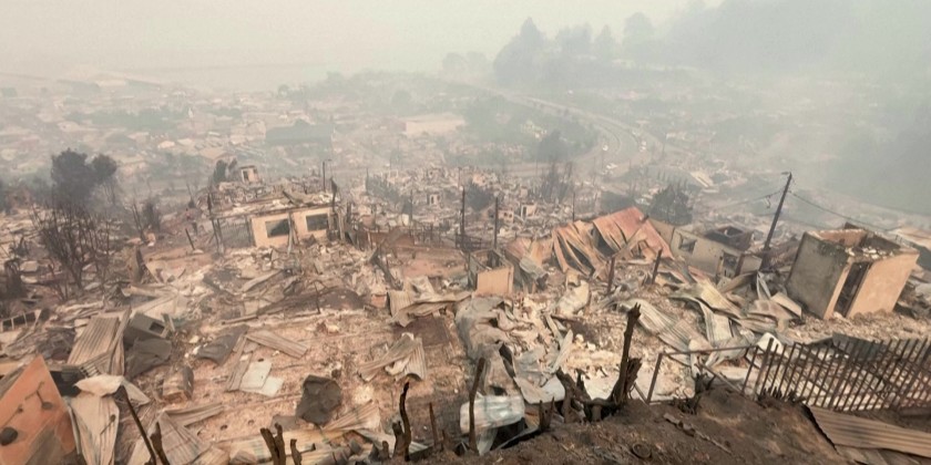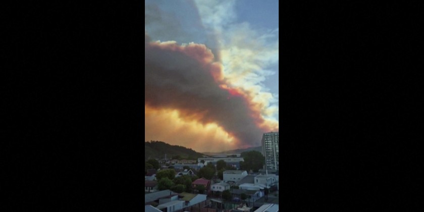More than 50,000 people have been displaced by blazes burning for two days now in the Nuble and Biobio regions about 500 kilometers south of Santiago, fanned by strong winds and hot weather. The president traveled to the badly impacted city of Concepcion to oversee the firefighting efforts.