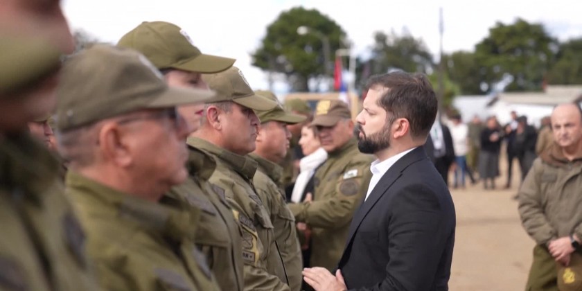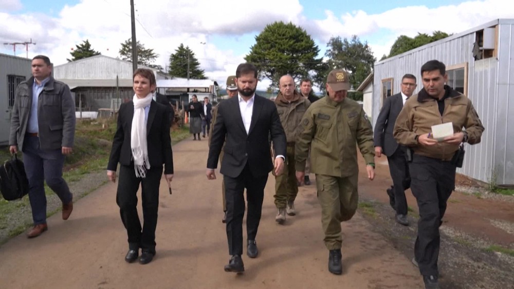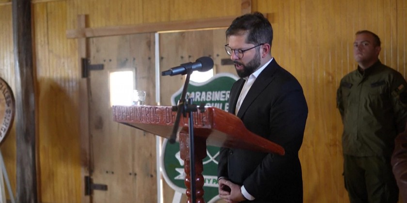 Chile's President Gabriel Boric and the Interior Minister arrived at Los Alamo police station to honor three police officers killed in an ambush in southern Chile. He traveled to the area with a large contingent and later declared three days of national mourning.