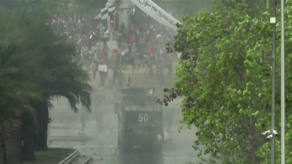 Protests flared in Chile's capital Santiago on Wednesday after days of protests, arson attacks and looting which has seen more than 6,000 people detained and at least 15 people killed. Thousands of Chileans defied a state of emergency and military curfews. Clashes erupted after largely peaceful marches were led by students and trade unionists against social inequality since Chilean President Pinera pledged social reforms to try to quell days of rioting. Pinera has said he hoped to turn the violent protests into an "opportunity" for Chile. Pinera's proposed reforms include a guaranteed minimum wage, a hike in the state pension and the stabilization of electricity costs.
