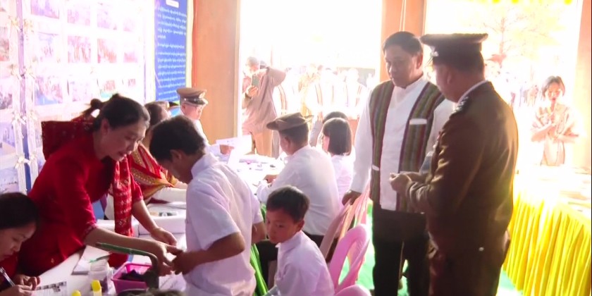 In addition, 50 million kyat cash assistance were provided to the displaced staff members in Chin State, along with the provisions of DTH Satellites, DVB T-2 Sets, foodstuffs, Greenhouse and sports gears. In the afternoon, Admiral Tin Aung San and party met with the state, district and township levels departmental personnel.