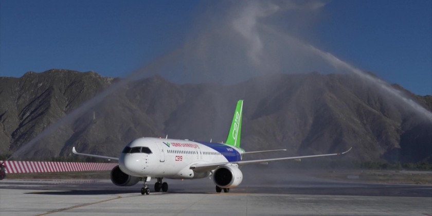 China's domestically developed single-aisle aircraft, the C919, completed a flight from southwest China's Sichuan Province to neighboring Xizang Autonomous Region on Thursday, marking the aircraft's first landing in Xizang.