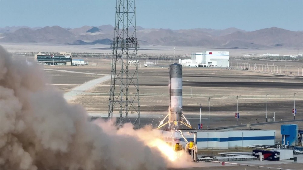 China’s first rocket made of stainless steel, stood ready on the launch pad.This test is an advanced verification of some key technologies for the vertical takeoff and landing retrieval of the reusable rocket.