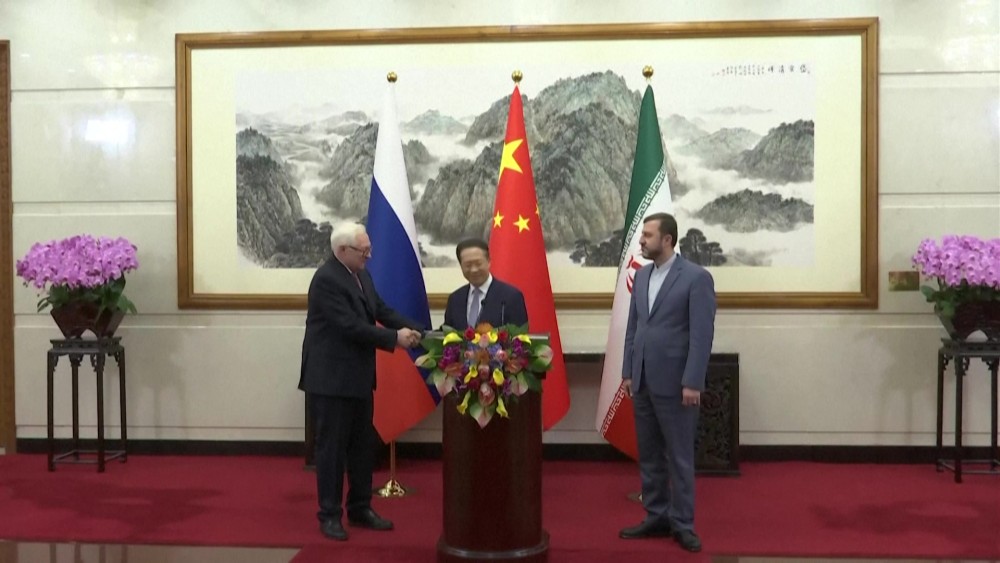 China, Iran and Russia called for diplomacy over “pressure and threats” and an end to “all illegal unilateral sanctions” following talks on Tehran’s nuclear program Friday in Beijing. During the Meeting, China’s Executive Vice Foreign Minister Ma Zhaoxu stated that “the relevant parties should be committed to eliminating the root causes of the current situation and abandon sanctions pressure and threats of force”.