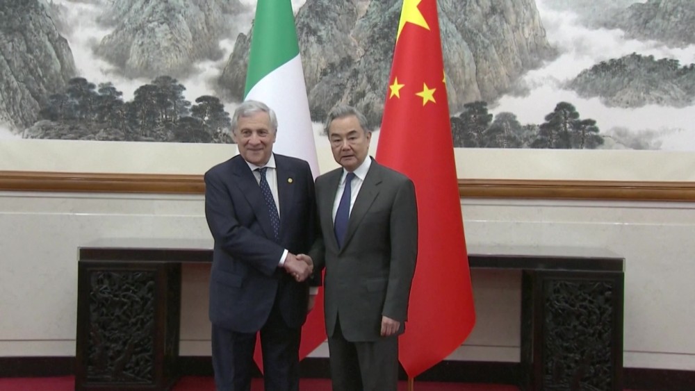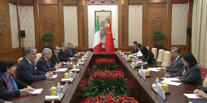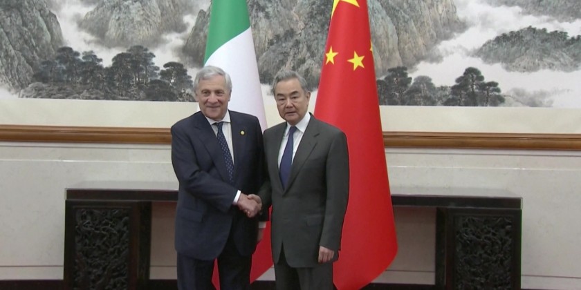 Italian Foreign Minister is currently in China from to meet with Chinese Foreign Minister Wang Yi and Commerce Minister Wang Wentao to strengthen economic ties and discuss international peace efforts.