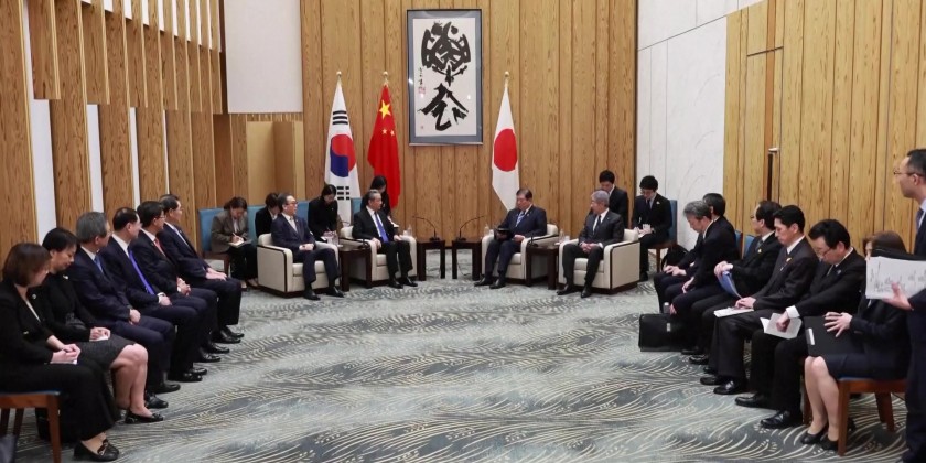 Wang also stated that China is willing to work with Japan and the ROK to establish a correct view of World War II history, uphold multilateralism, safeguard the core role of the United Nations in the international system. He also stressed to continuously promote cooperation and make respective contributions to regional and world peace and prosperity.
