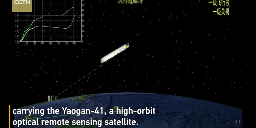The carrier rocket blasted off at 9:41 p.m. local time, carrying the Yaogan-41, a high-orbit optical remote sensing satellite. The satellite will be used in land survey, crop yield estimation, environmental management, meteorological warning and forecasting and comprehensive disaster prevention and reduction.