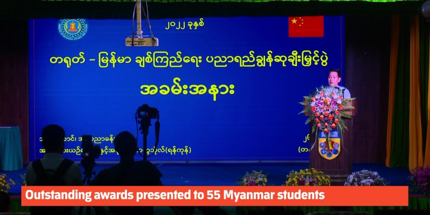 In the ceremony, Union Minister for Religious Affairs and Culture U KoKo, the Chinese Ambassador to Myanmar and the Cultural Counsellor presented awards to outstanding students.