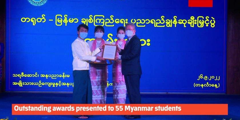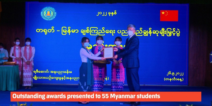 As a part of China-Myanmar relations, China Embassy presented the China-Myanmar Friendship Outstanding Award to 55 Myanmar students from the National Universities of Arts and Culture as well as the State High Schools of Arts in Yangon and Mandalay. The outstanding award offering ceremony was held at National University of Arts and Culture (NUAC) Yangon on Monday.