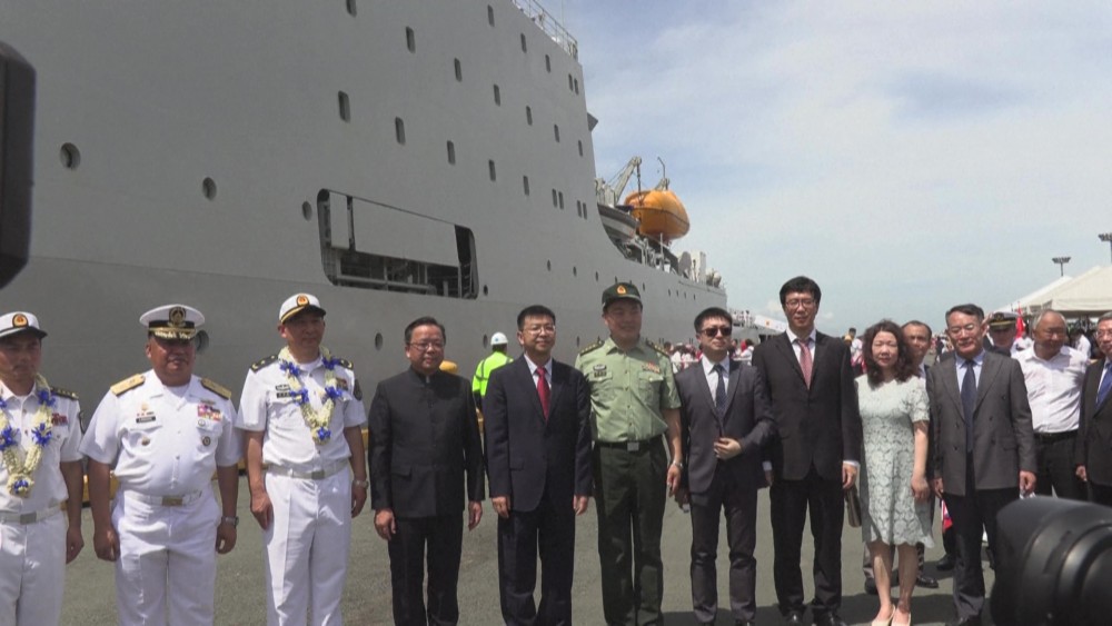 A Chinese navy training vessel berthed in the Philippines on Wednesday.