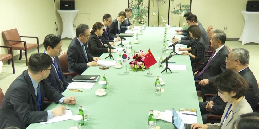 Chinese Foreign Minister Wang Yi held a meeting with South Korean Foreign Minister Cho Tae-yul on Saturday in New York City. Amid rising global turbulence, unilateralism and protectionism, China and South Korea, as close neighbors and key partners, should collaborate to manage risks and strengthen bilateral ties, Wang Yi said.