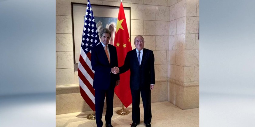 China's special envoy for climate change Xie Zhenhua held four hours of talks with his American counterpart John Kerry in Beijing on Monday.