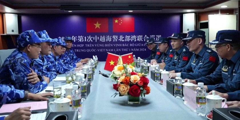 The Chinese vessels Xisha and Zhongjian joined the Viet Nam Coast Guard for a joint patrol in the Beibu Gulf on Monday, their second such operation this year.