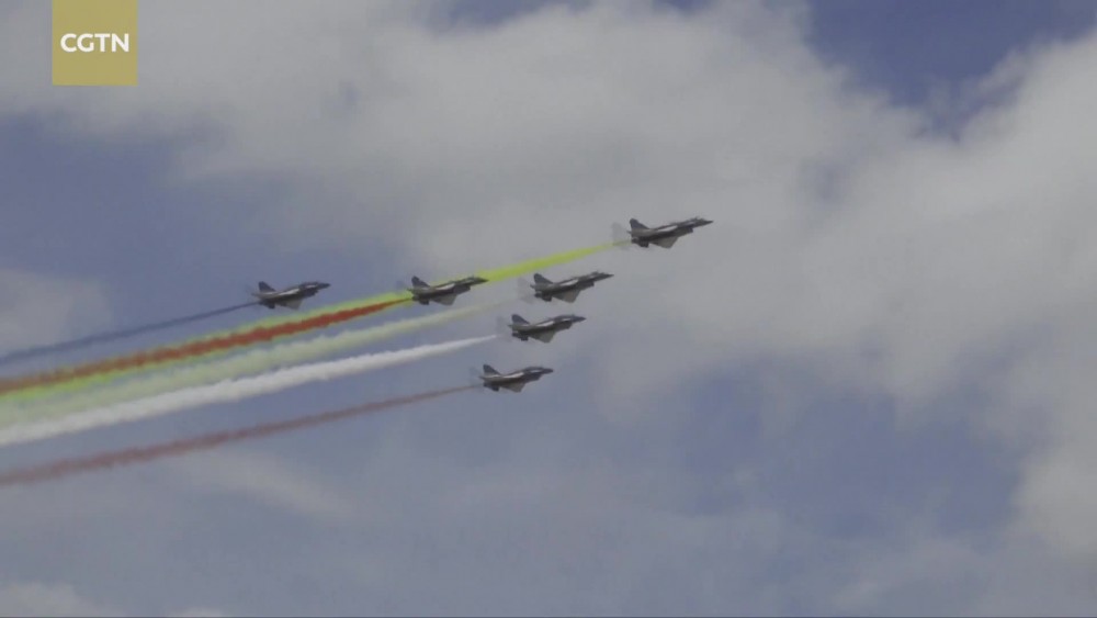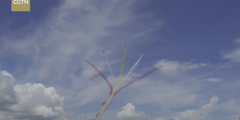 The Chinese People's Liberation Army (PLA) Air Force's August 1st Aerobatics Team successfully completed its first test flight for the Malaysia air show at the Langkawi International Airport.