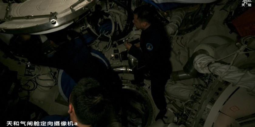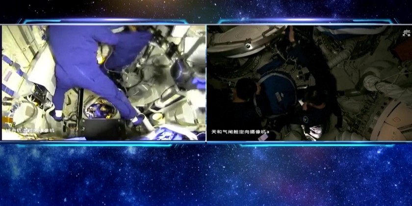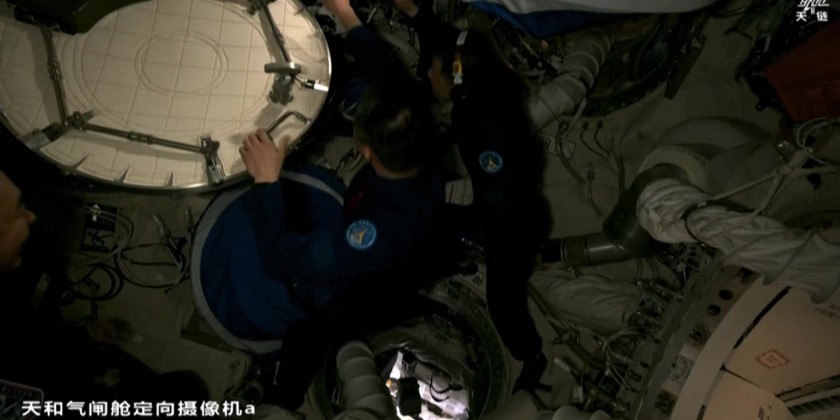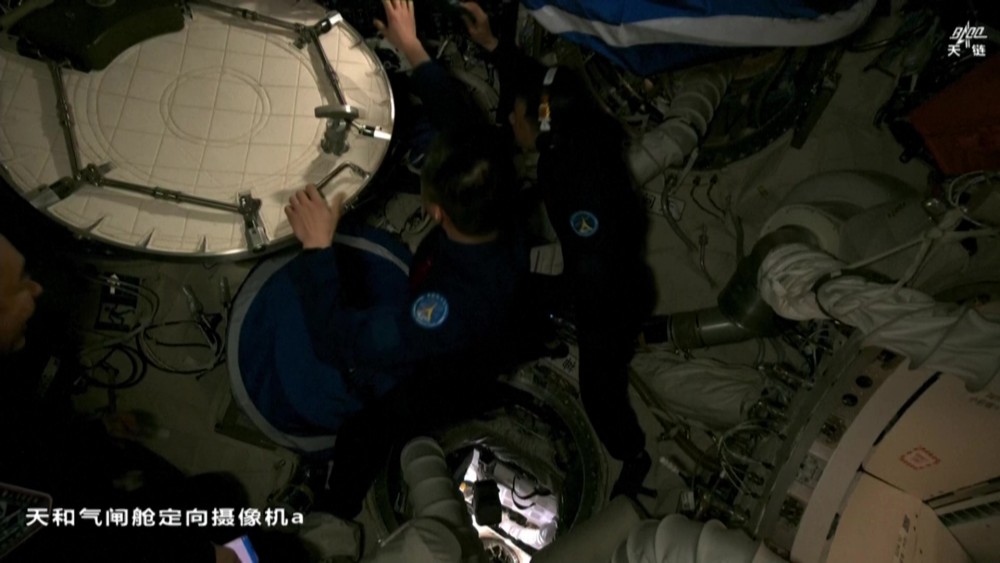 The three astronauts aboard China's Shenzhou-21 spaceship have entered the country's space station and met with another astronaut trio, starting a new round of in-orbit crew handover.
